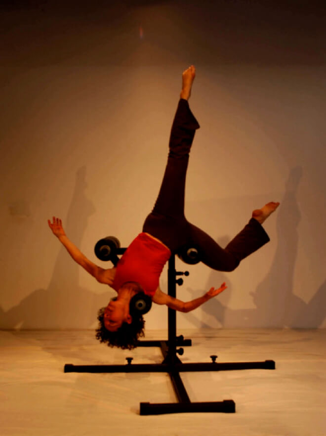 Through a rich variety of breath, sound, multidimensional movement explorations in various relationships to gravity such as standing, sitting, inversions or hanging off of platforms or chairs, we experience our capacity for free-flowing, non-constrained expression. When we invigorate our bodies to move fluidly from one circumstance to another in gravity, we increase our ability to be adaptable and resilient in all circumstances. Rather than repetitively sculpting and isolating particular body parts or muscles, we focus on the strength of the entire system as a whole.